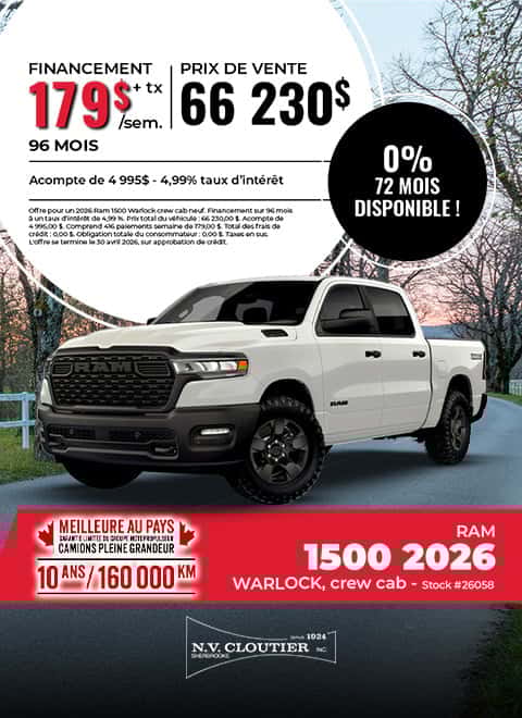 N.V. Cloutier Inc. à Sherbrooke, QC répond aux besoins de chaque client avec grand soin. Nous savons que vous avez de grandes attentes et en tant que concessionnaire automobiles, nous relevons le défi de répondre et de surpasser chaque fois les normes. Laissez-nous vous prouver notre engagement à atteindre l’excellence!